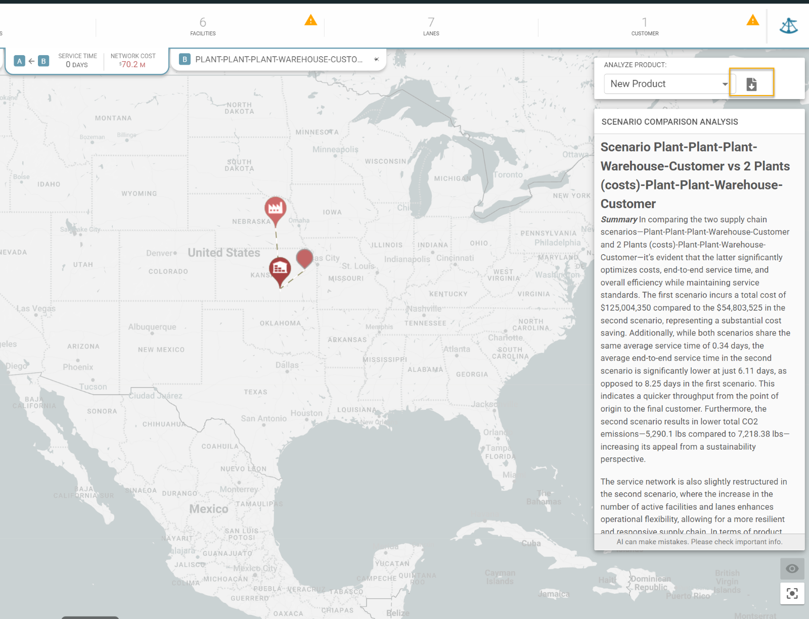 This comparison is sensitive to the direction of the arrow.  Also, AI has a certain amount of artistic license.  You might see statements that are wrong or odd.  CALL FOR FEEDBACK:  Logility sees both the comparison of scenarios in one map and use of Generative AI as areas to focus our development efforts. Please provide your thoughts and feedback by entering a ticket in the user portal.