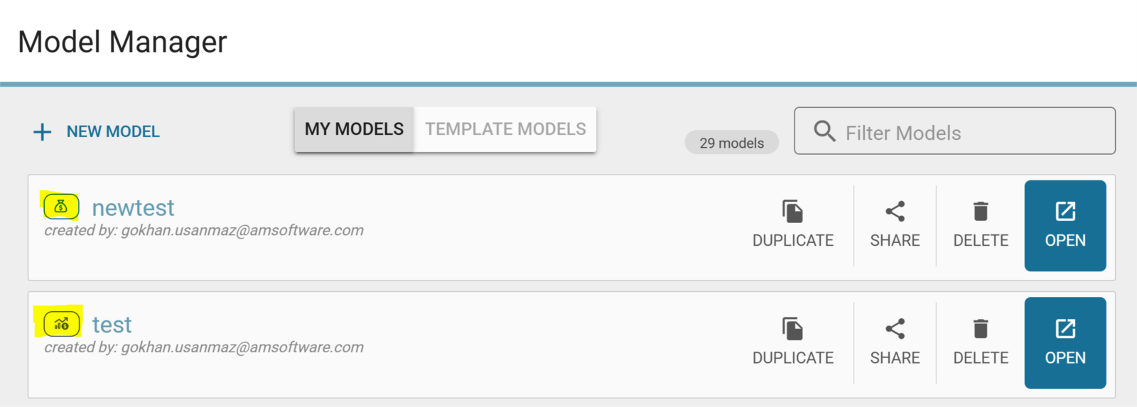 Enhanced Model Management: The model library (scenario selector>>my models) has a new look.  When users enter the model library, the open button will be clearer and will be able to open one of any models, with fewer clicks.